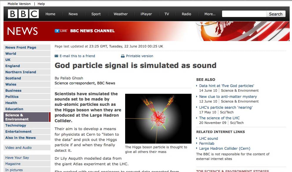 - Sound of science (New Scientist) discusses many applications of sonification
